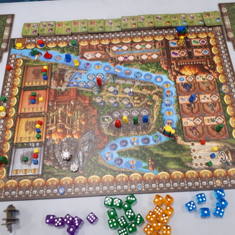 Next on the list for us was Rajas of the Ganges, a classic eurogame with elements of worker placement, tableau-building, a pretty river of goody-collection, and a delightful selection of dice manipulation spaces… all of which help to ensure multiple paths to victory and an assortment of workable strategies.