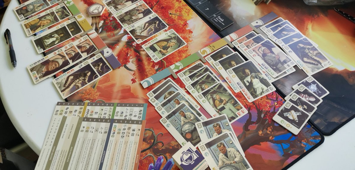 This is a new game by Janice and Stu from Wren Games, but also billed as a thematic standalone sequel to a previous game called Assembly (which I’m not familiar with). It’s certainly colourful, and is more of a multiplayer programmed movement / memory game in which players have to manoeuvre their ship through a challenging, puzzle-style, hazard-strewn tableaux in an effort to make it back to Earth with a virus sample on board. Another game from the ‘on-point-and-currently-topical’ bucket, then!