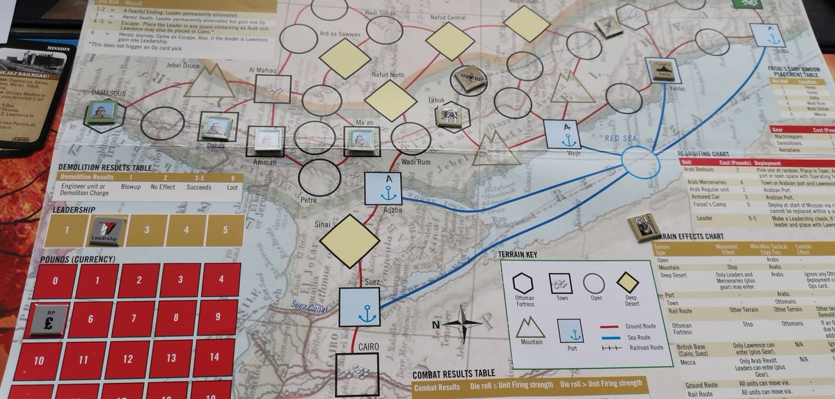 Possibly the longest game I played in this first week at just shy of 3 hrs, this is a solo mini-wargame from Decision Games (based on their core Raider system). Although you can opt to play any single scenario/mission from this, I chose to play the campaign version (four linked scenarios), and although I failed the first mission, I did get very lucky in subsequent missions, and in fact, only succeeded in the final scenario ‘Damascus!’ through sheer luck: a suicidal final assault on Damascus by Lawrence himself with just an Armoured Car as support (all the rest of my forces having been destroyed by the Ottomans) — amazingly, the garrison at Damascus (randomly assigned face down at the start of the game) turned out to be a big fat ‘0’ (it could have been 0-4, representing the defending forces), which allowed Lawrence to walk in and claim the win!