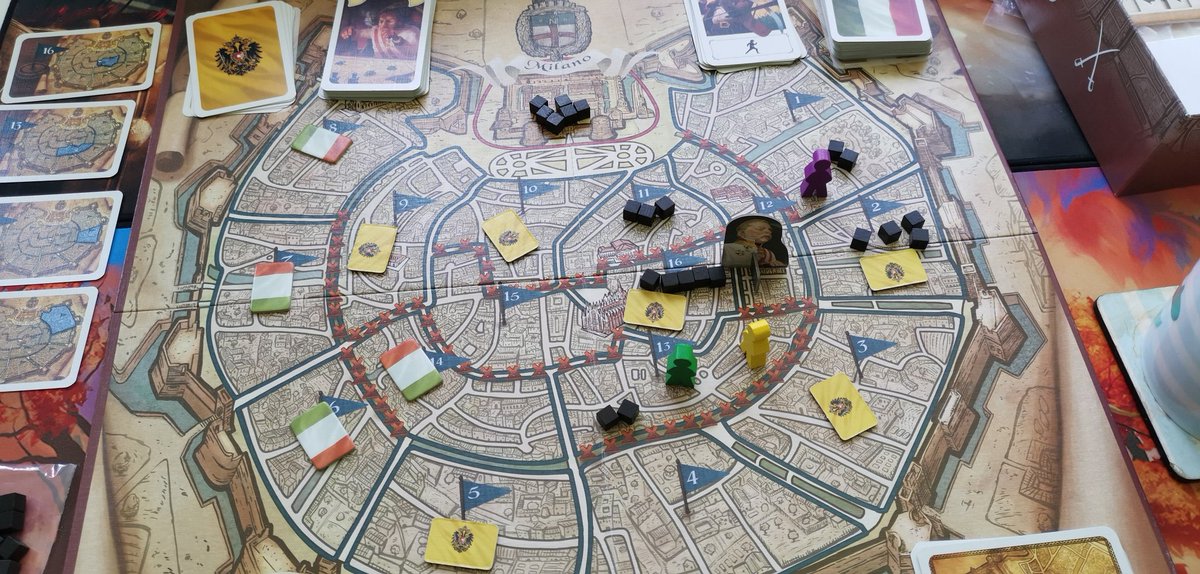 This game is the infamous title that broke my game-buying boycott last year, and was sold to me as a tougher Pandemic-stylee game in which you have to take control of (or liberate) five districts on the board before Radetzky and his Austrian forces overrun the city! With multiple players it’s pretty tough, anyway, but I was pleasantly surprised at just how much I enjoyed this as a purely solo experience, and chuffed to bits that it didn’t take too long, either (just 30-45 mins).