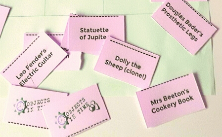 ‘Missions’ consisted of a mix of obtaining certain objects and ensuring certain events were Paradoxed or Resolved, with object collections yielding the most VPs. The term “Mission” was dropped a short while later, mainly because I associated it with a game called Chrononauts that had a similar theme, but played very differently (with a lot more randomness, I think).