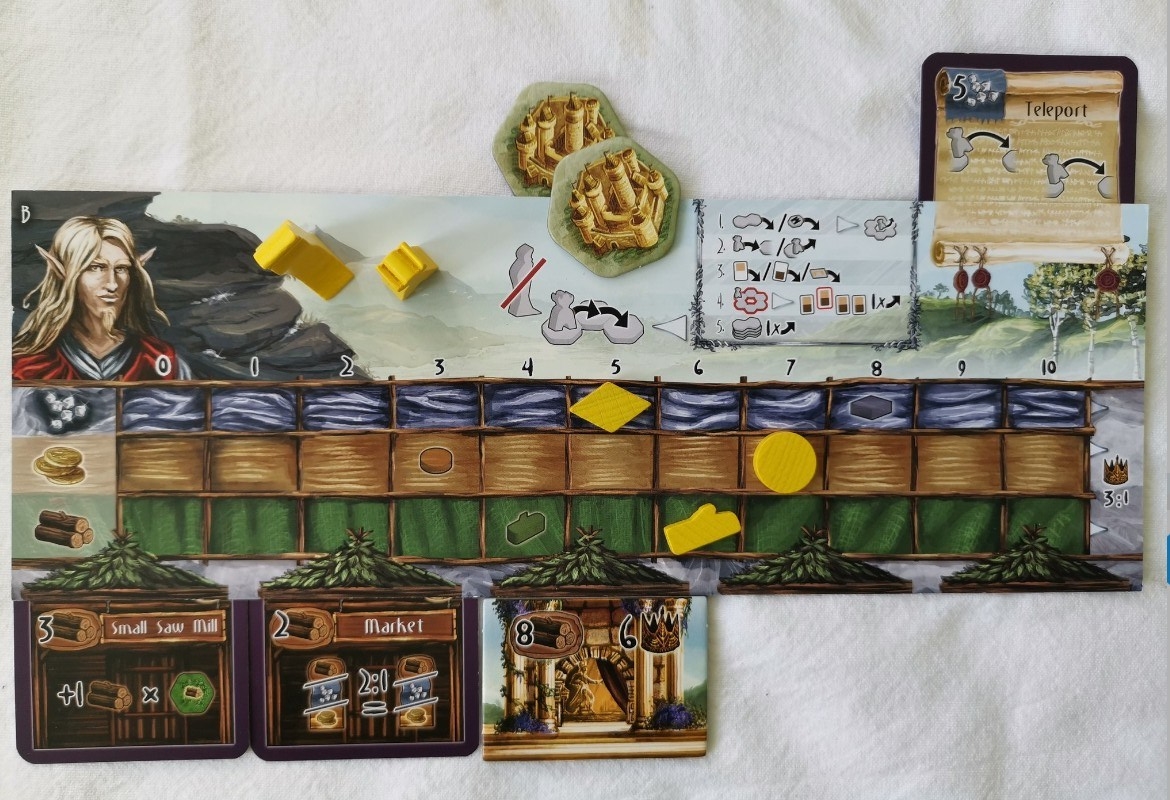 The asymmetric start gives each race unique abilities, and the jury is still out as to how balanced some of these abilities are: Humans can place their Leader at any time, for example (which is incredibly powerful, but does force the player to take it back more often), while Dwarves will always have an extra terrain tile to choose from (useful because normally you only have one, drawn at random at the end of your turn); Mages can buy a card every turn (something you can usually only do if you’ve closed off an area during the turn), while Elves can move one of their meeples a couple of spaces at the end of their turn (also quite powerful, but restrictive too). Halflings meanwhile, may construct a building or monument and cast a spell in the same turn (again, this is powerful because you can only do one of these actions per turn usually).