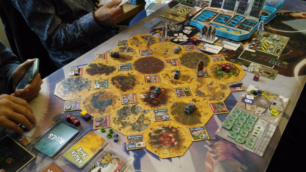 Since settling down to play our first game of Wasteland, this has become a firm favourite with our group, and we’ve worked our way through almost the entire Campaign series now. Of those 8-10 games (each 2½-3hrs long), at least 6 of them ended up going right down to the wire, with at least 2 or 3 players all able to win on that final turn — besides the tension this creates towards the end of the game, it also demonstrates real balance in the game-play despite an asymmetric start in which every character’s truck has a slightly different set-up at the beginning (extra movement, extra firepower, extra trailer, etc).